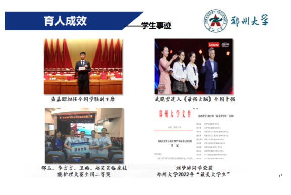 郑州大学已经进入国家世界一流大学建设序列,护理与健康学院也迎来难得的发展机遇。学院将继续秉承“求是担当”的大学精神,积极践行“健康中国”战略助力健康中原建设,持续构建以学院为引领,构建“1+N+5”卓越护理人才培养体系,和“1+1”双师培养机制,落实落细“新医科”、“以德树人”和“三全育人”教育措施,立足河南、面向全国、放眼世界,进一步强化内涵、改革创新,推进护理教育事业高质量快速发展,努力打造“特色鲜明、国内一流、国际知名”的一流护理学科,向着建设世界一流大学的目标砥砺奋进!